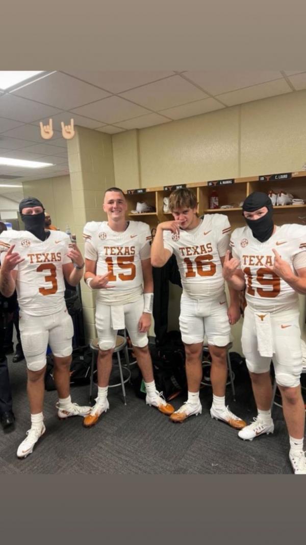 杜兰特晒出一张得克萨斯大学橄榄球队球员的照片,配上2个“