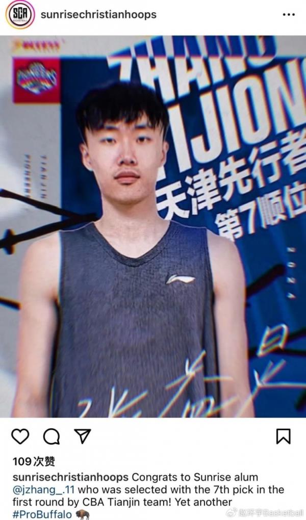 而当2019级学员张益炅在CBA选秀首轮第7顺位被天津队选中时,他的高中母校和几位已经在NCAA D1效力的队友都转发了这一喜讯。