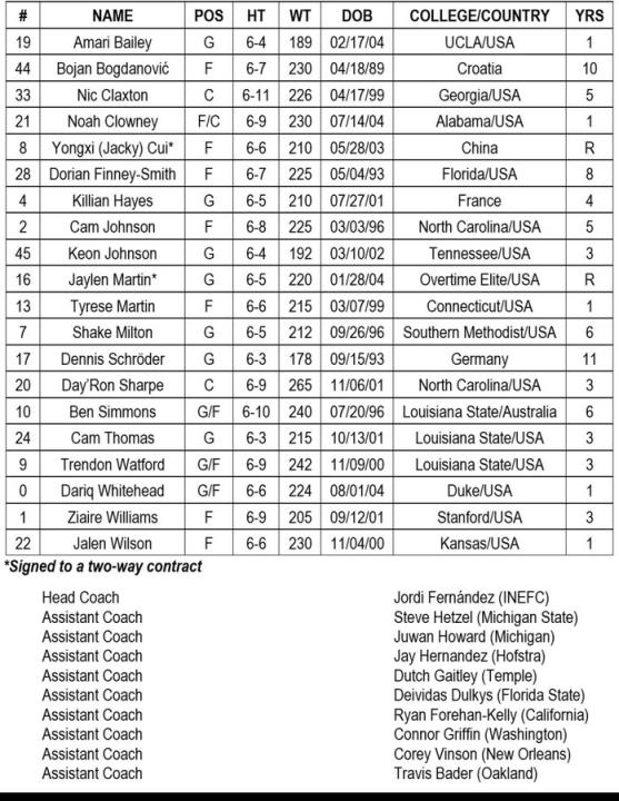 此外,西蒙斯、施罗德、托马斯、博格达诺维奇等球员也都在列。