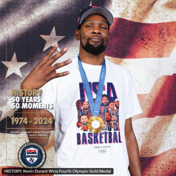 9月30日讯 今天,美国男篮官方晒出了杜兰特的奥运成就,详情如下: