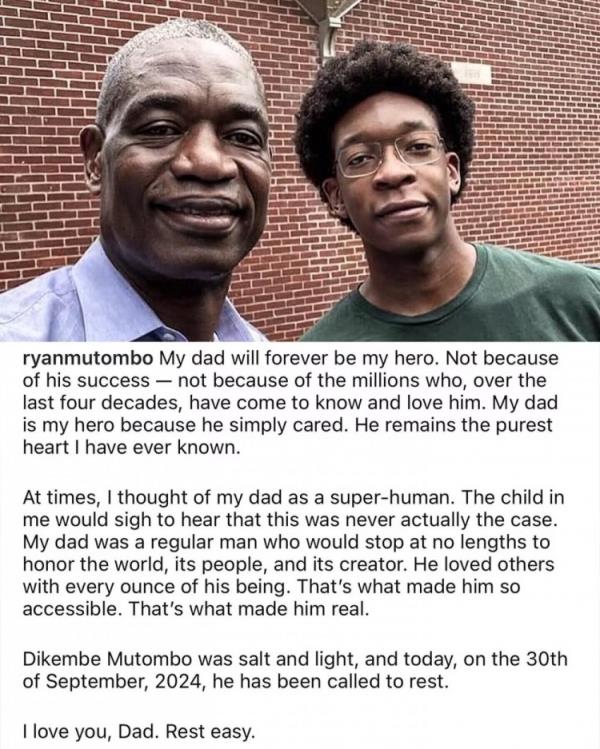 穆托姆博的儿子Katamba Wa Mutombo发文缅怀自己的父亲,他写道:“我的父亲将永远是我的英雄。这不是因为他所取得的成功,也不是因为在过去的四十年里,数百万人开始了解和爱戴他,我的父亲是我的英雄,只因为他很关心我,他是我所见过的最纯粹的人。