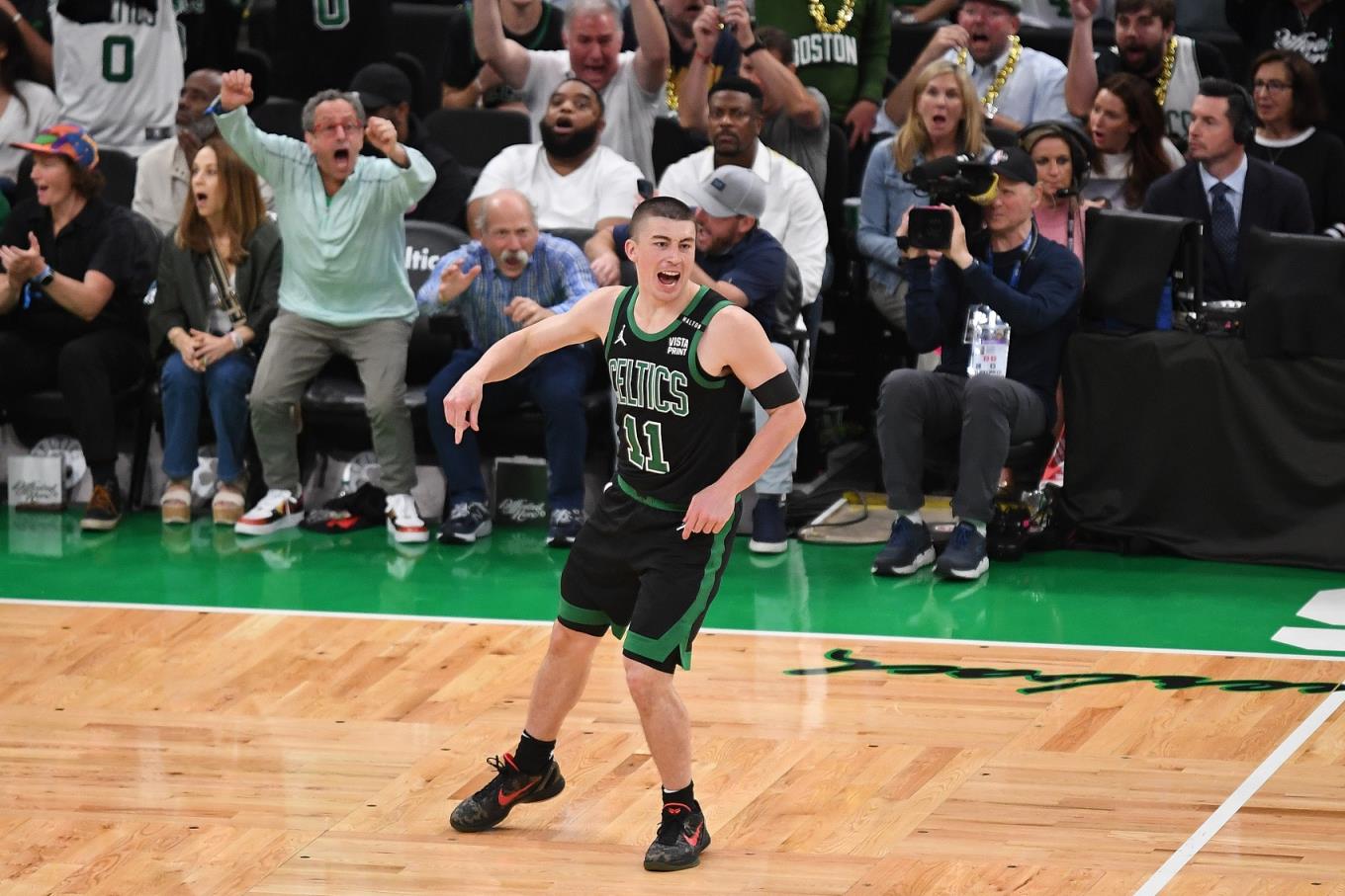 凯尔特人球员普理查德本场比赛替补出战依旧有上佳表现,比赛中命中一记精彩的追身3+1,他出场16分18秒,7投5中(三分3中2,罚球2中2),得到14分2篮板5助攻1抢断,正负值+27为全场最高。