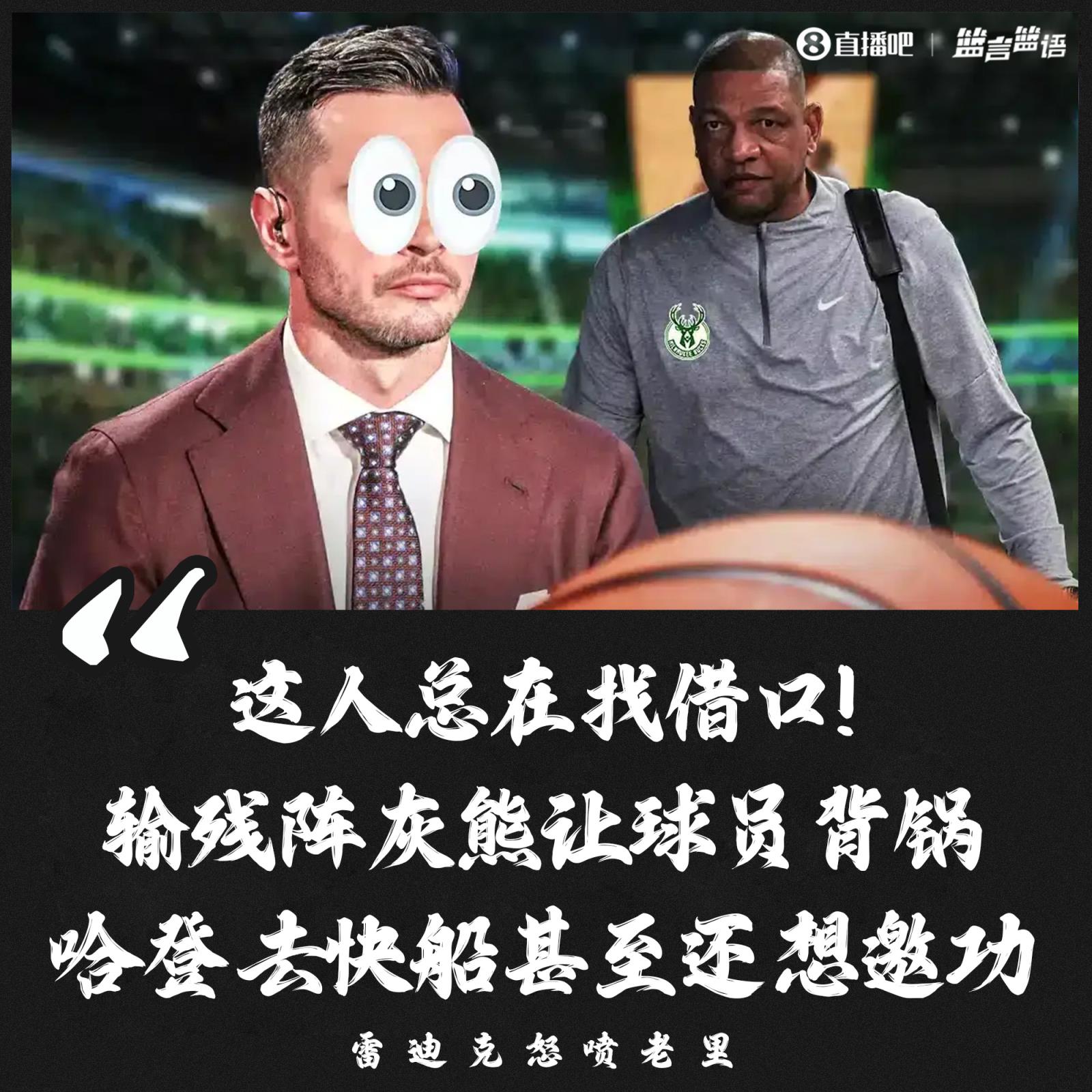 “老里这个人总是在找借口!老里,我们都知道在赛季中期接手一只球队很艰难!我们也理解。就像一个球员在赛季中期被交易一样,这也很艰难。但是你总是在找借口!永远在让你的球队背锅。输给灰熊你也让球员背锅,灰熊的球员他们可都是发展联盟和双向合同的球员!你们听听他上周末说的那些话!他现在甚至想把哈登交易到快船的功劳揽到自己身上!他想要因此获得赞誉?这个人...这个人根本一点责任心都没有!”