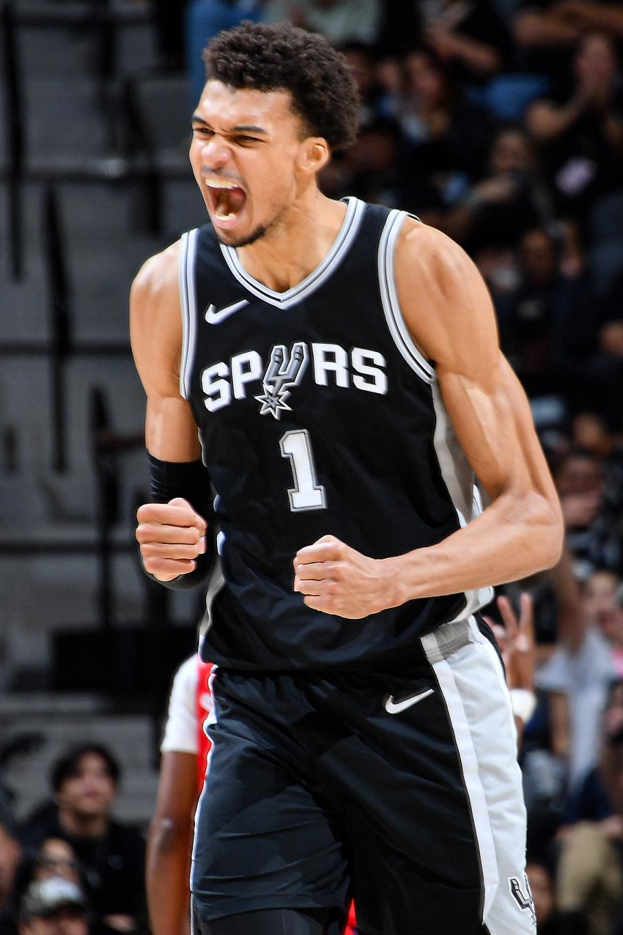本场比赛,文班亚马出战32分半钟,29中18(三分16中8)、罚球9中6,轰下生涯新高50分,另有6板2助1断3帽,正负值+13。