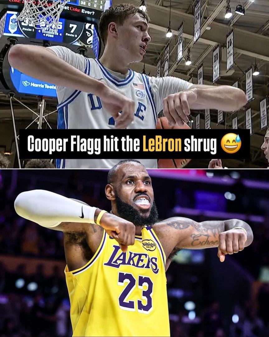 上半场比赛中,弗拉格还在一次抢断反击打成2+1之后模仿了詹姆斯的抖肩庆祝。
