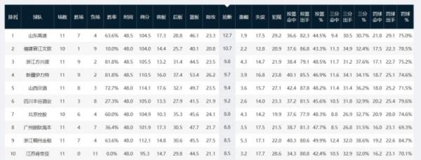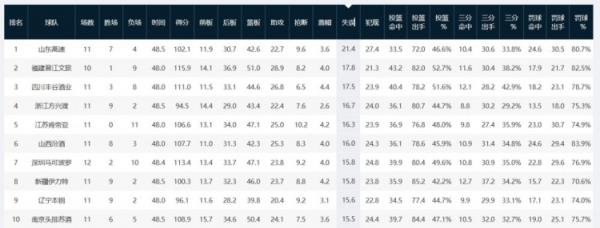 本场比赛,山东与福建的抢断数对比为21-12,失误数对比为22-25。