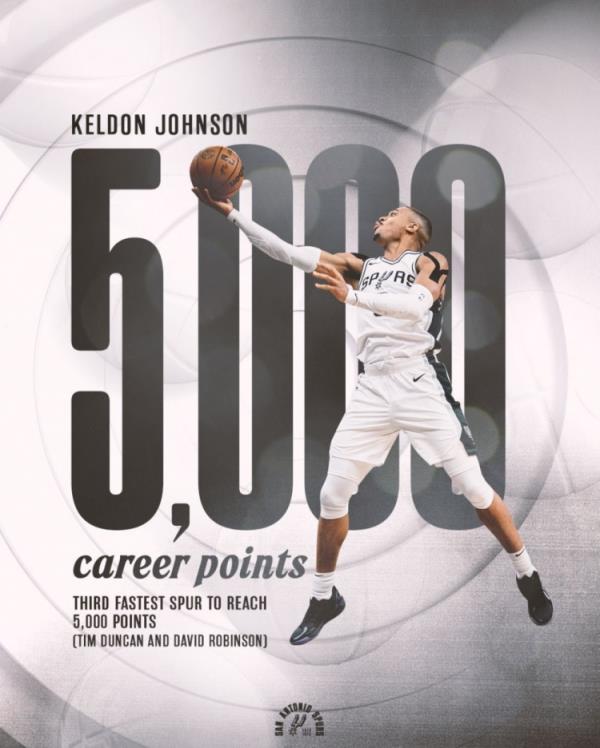 本场比赛过后,凯尔登-约翰逊生涯得分突破5000分,马刺队史第三快(312场比赛),仅次于邓肯和大卫-罗宾逊。