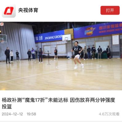 最终,杨政17折未达标,投篮测试因伤放弃,卧推测试6个。