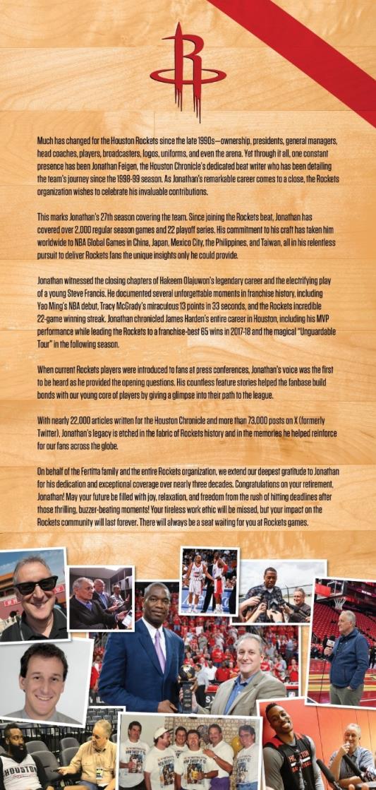 费根是《休斯敦纪事报》的首席篮球记者,过去27个赛季一致致力于火箭的报道。