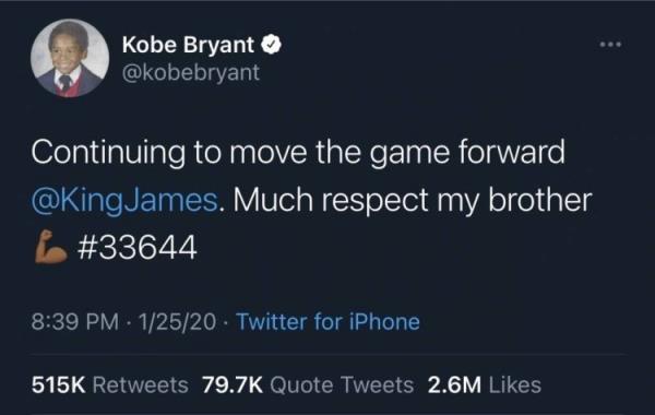 2020年1月26日,湖人91-108不敌76人。湖人球星詹姆斯砍下29分,他的生涯总得分也由此超越球队名宿“黑曼巴”科比,升至历史第四。