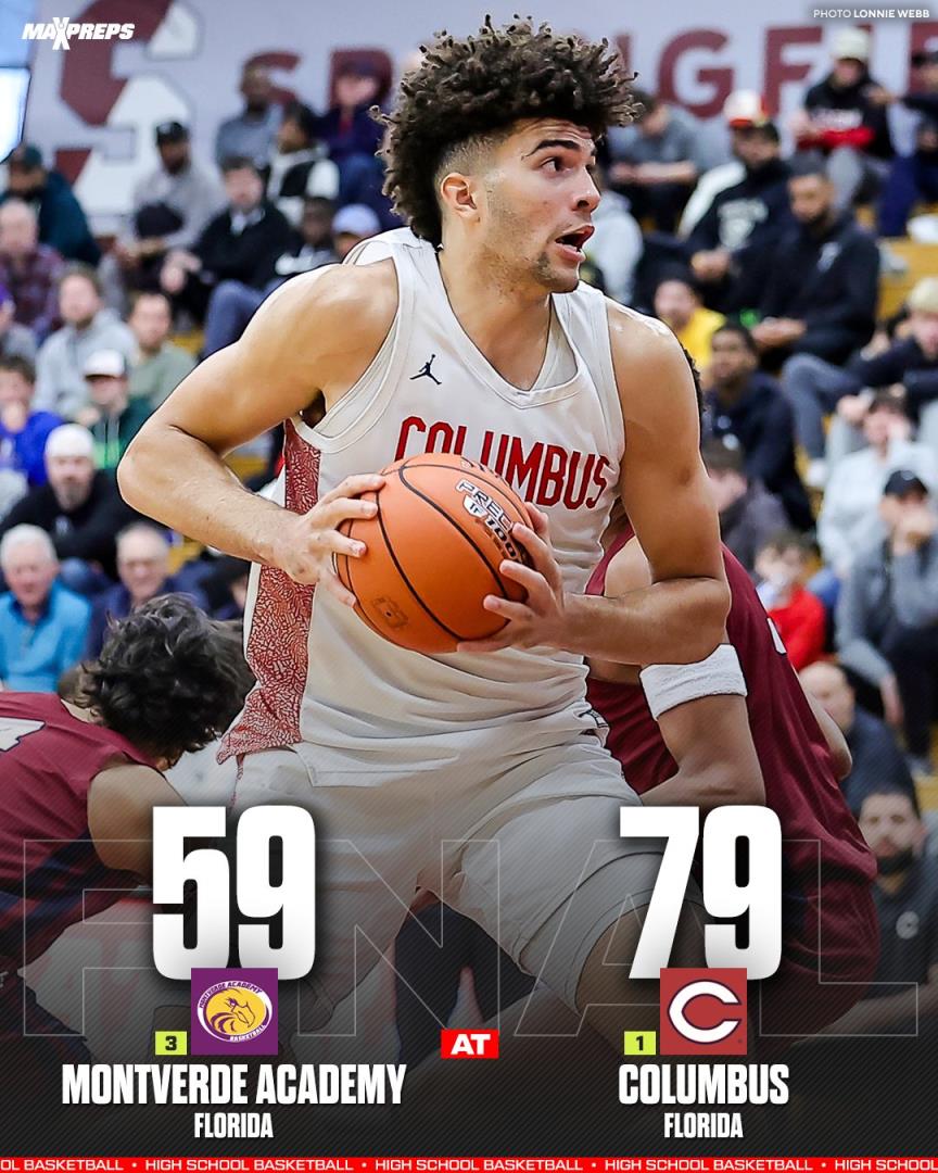 本场比赛,五星侧翼贾克森-理查德森贡献多次惊人扣篮,砍下23分3抢断,五星前锋卡梅隆-布泽尔砍下25分14篮板6助攻,四星后卫凯登-布泽尔则得到13分6篮板5助攻。佛罗里达哥伦布本赛季18胜3负(还剩2场比赛),有望连续四年赢得州际锦标赛。