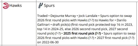 值得一提的是,老鹰2025年的首轮签还在马刺手里,这是一个无保护的首轮签。而且2025年是公认的选秀大年。