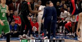 在昨天鹈鹕输给凯尔特人的比赛中,德章泰-穆雷第一节出现受伤的情况。