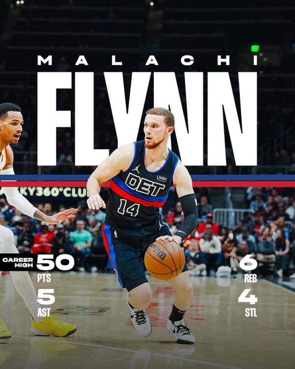 上赛季,在活塞对阵老鹰的比赛中,弗林替补出战狂轰50分,创个人生涯新高,也是NBA历史上第三位替补轰下50分的神人!同时也是历史上50分先生中生涯场均得分最低的球员!