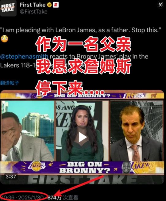 25年3月7日,湖人主场113-109击败尼克斯。这场比赛刚拿到ESPN上亿美元续约合同的A-史密斯来到了湖人场边观战。