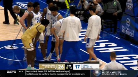 随后的两场分区锦标赛(分别对阵北卡罗来纳大学、路易斯维尔大学),弗拉格都因伤缺阵,杜克都赢下了比赛,在疯三到来之前,蓝魔迎来了一波11连胜。