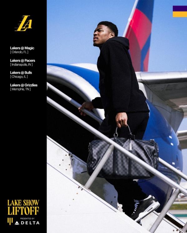 3月25日讯 湖人官推晒出詹姆斯、八村塁和里夫斯登机照,并写道:客场之旅。