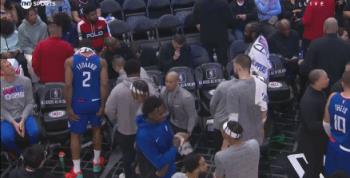 快船官方表示小卡遭遇胸廓痉挛,提前退出比赛。