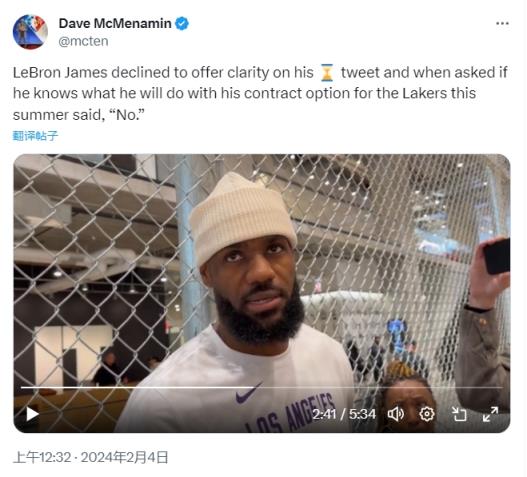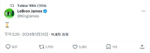 詹姆斯曾在1月31日湖人不敌老鹰赛后,发布了一个⌛表情的推文。