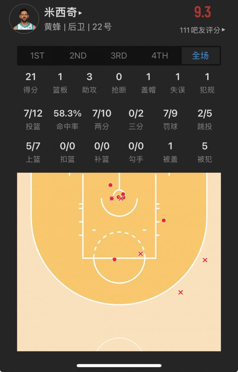 黄蜂14届52号秀 瓦西里耶-米西奇 出战30.7分钟