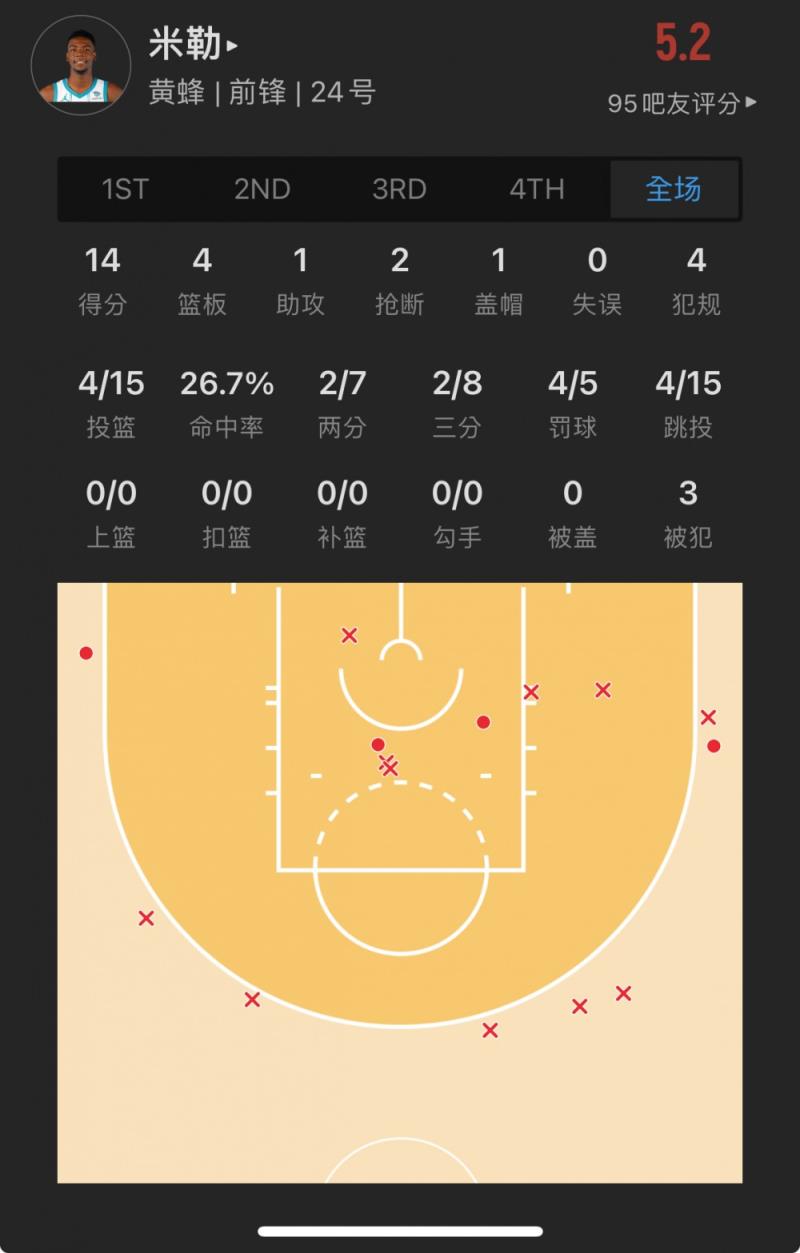 黄蜂榜眼秀 布兰登-米勒 出战28.7分钟