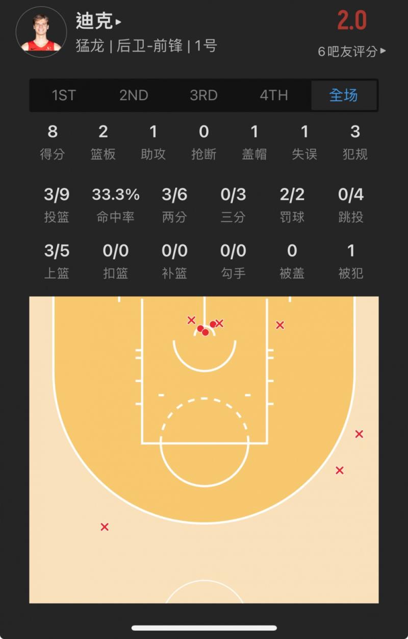 猛龙13号秀 格雷迪-迪克 出战22.7分钟