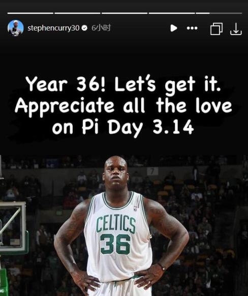 库里Instagram上晒出了奥尼尔身穿绿军36号球衣的照片并写道:“第36岁!冲冲冲!感谢所有人在这一天给予的爱。爱你,鲨鱼!”