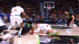 琼斯脚勾到鲍威尔左脚,鲍威尔忍痛继续参与抢球