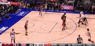 比赛第三节末,热火球员邓肯-罗宾逊接连命中3记三分球,并且帮助球队打停活塞。