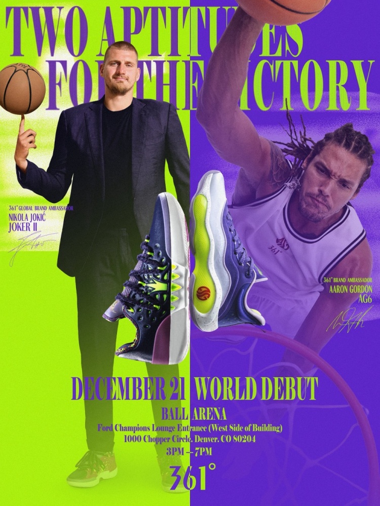12月22日讯 球鞋记者Nick DePaula报道,约基奇和阿隆·戈登将于当地时间21日下午在丹佛掘金的主场举办他们全新签名鞋的全球发布活动。