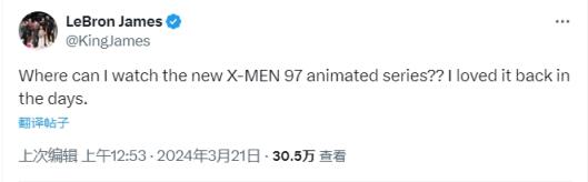 “哪里可以看新上映的X战警97动画版?我以前很喜欢的!”詹姆斯写道。