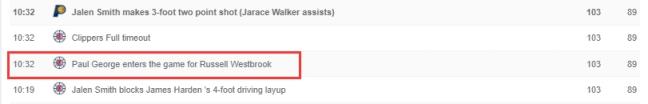 威少/哈登/鲍威尔/塔克/祖巴茨/:打了1.5分钟,净负6分!