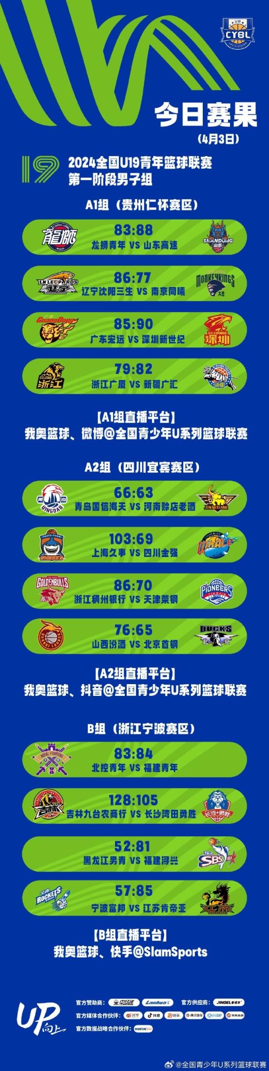 2024全国U19青年篮球联赛男子组第一阶段三个赛区结束了首日争夺,第一比赛日赛果出炉!