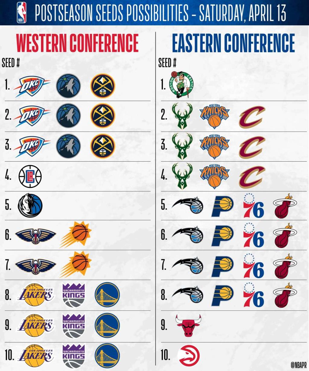 西部快船、独行侠+东部凯尔特人、公牛和老鹰确定了具体排名