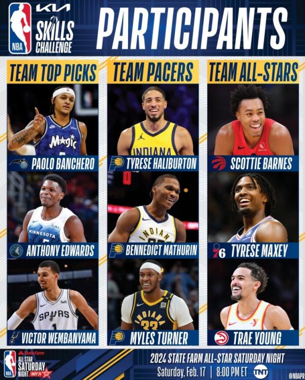 本届全明星将在印第安纳举办,比赛时间为2月17日。