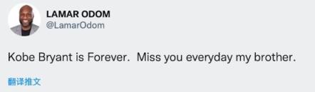 今日科比雕像将揭幕。科比前队友奥多姆发推缅怀科比,他写道:“科比就是永恒。每天都想你,我的兄弟。”