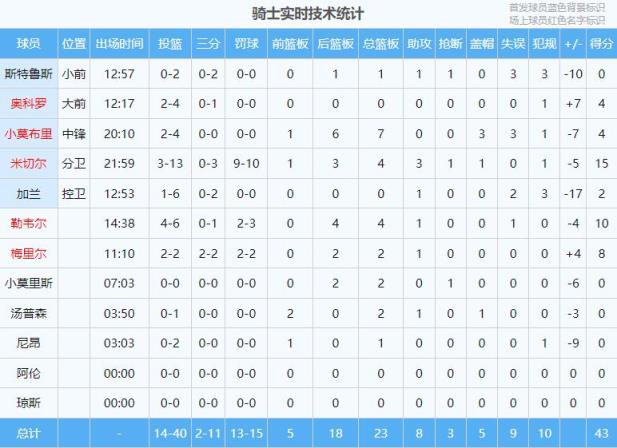 骑士抢七半场落后魔术10分:班凯罗闪耀 加兰“犯罪”米切尔打铁