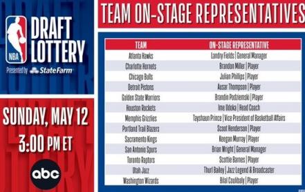 5月12日讯 今年的选秀乐透抽签仪式将在当地时间5月12日下午三点的芝加哥举行。