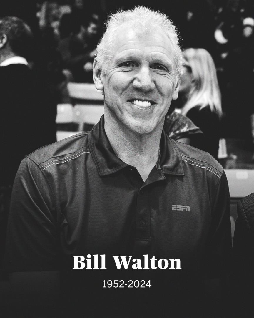 5月28日讯 NBA名宿、两届NBA总冠军成员、奈史密斯篮球名人堂成员比尔-沃顿去世,享年71岁。