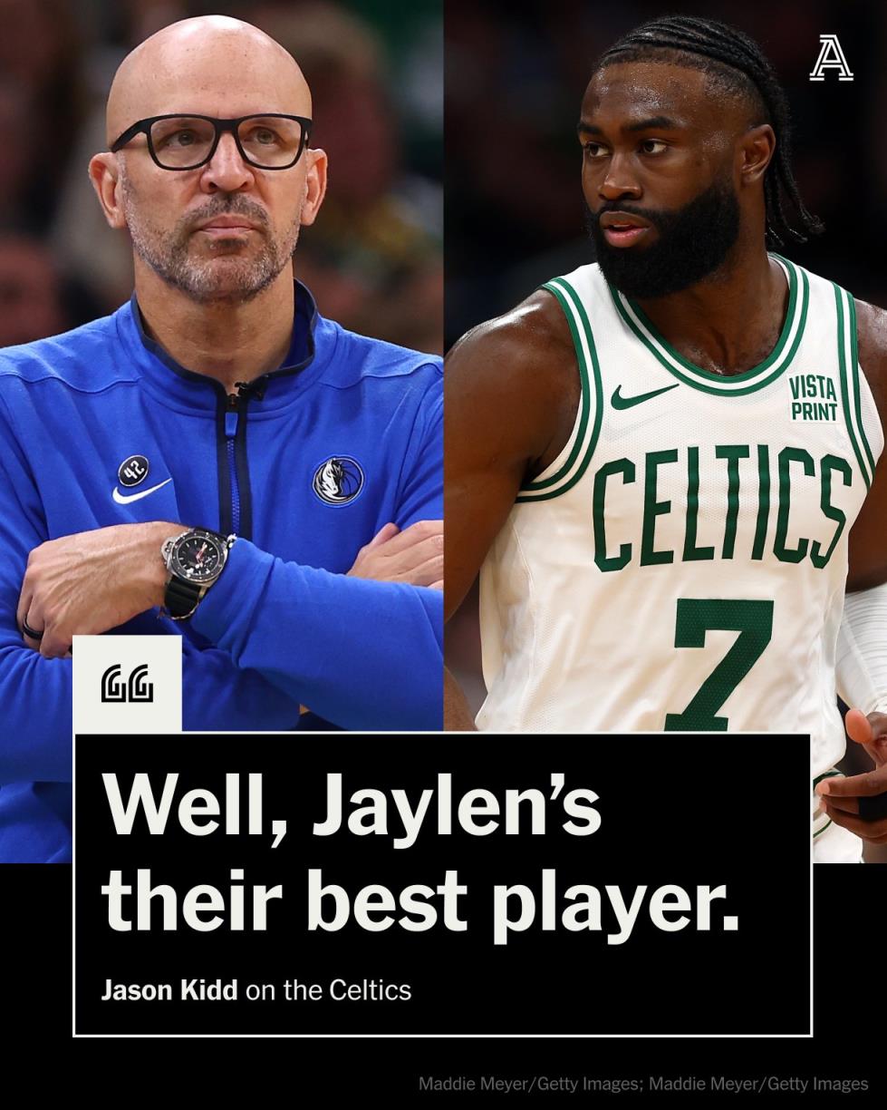 “杰伦是他们最好的球员,防守端他全场领防东契奇,进攻端还能造杀伤上罚球线,他什么都能做,这就是最好的球员所做的事情。他攻防两端都打得很高效,而且他整个季后赛都是这么做的,他是东决MVP。他总决赛还在继续这样的表现,他打出了高水平,我们要对他加强身体对抗,把他挡在禁区之外,不能让他上罚球线。(Jaylen is their best player.. He plays both both sides at a high rate.)”基德说道。