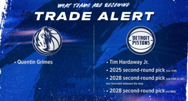 7月7日讯 独行侠官方宣布,球队正式将小哈达威+3次轮送往活塞换回格莱姆斯。