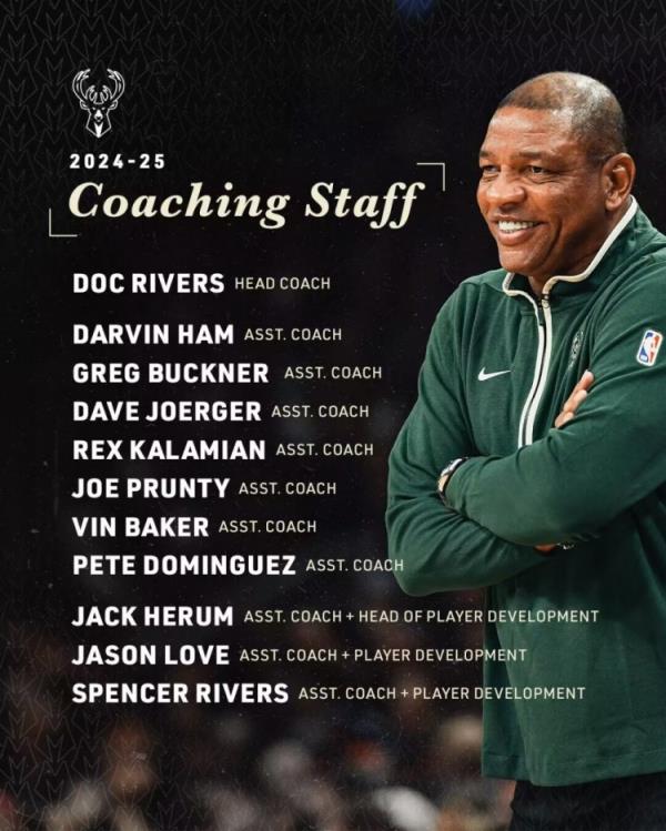 7月9日讯 今天,雄鹿官方正式宣布了新赛季的教练组,详情如下: