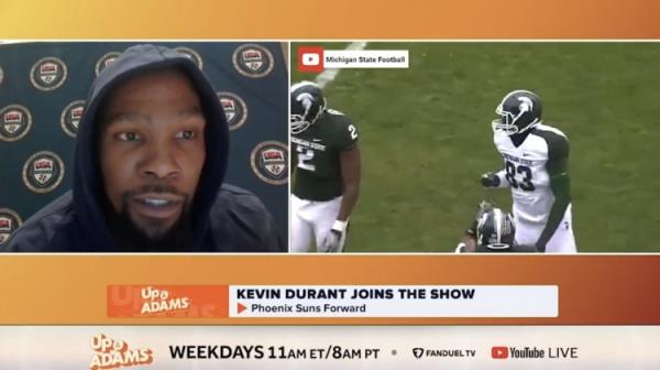7月14日讯 今日,NBA巨星凯文-杜兰特参加了播客《Up & Adams》,他在节目里谈到了与追梦谁是更好的橄榄球边锋。