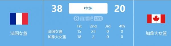 7月30日讯 奥运女篮小组赛,法国女篮半场38-20领先加拿大女篮。
