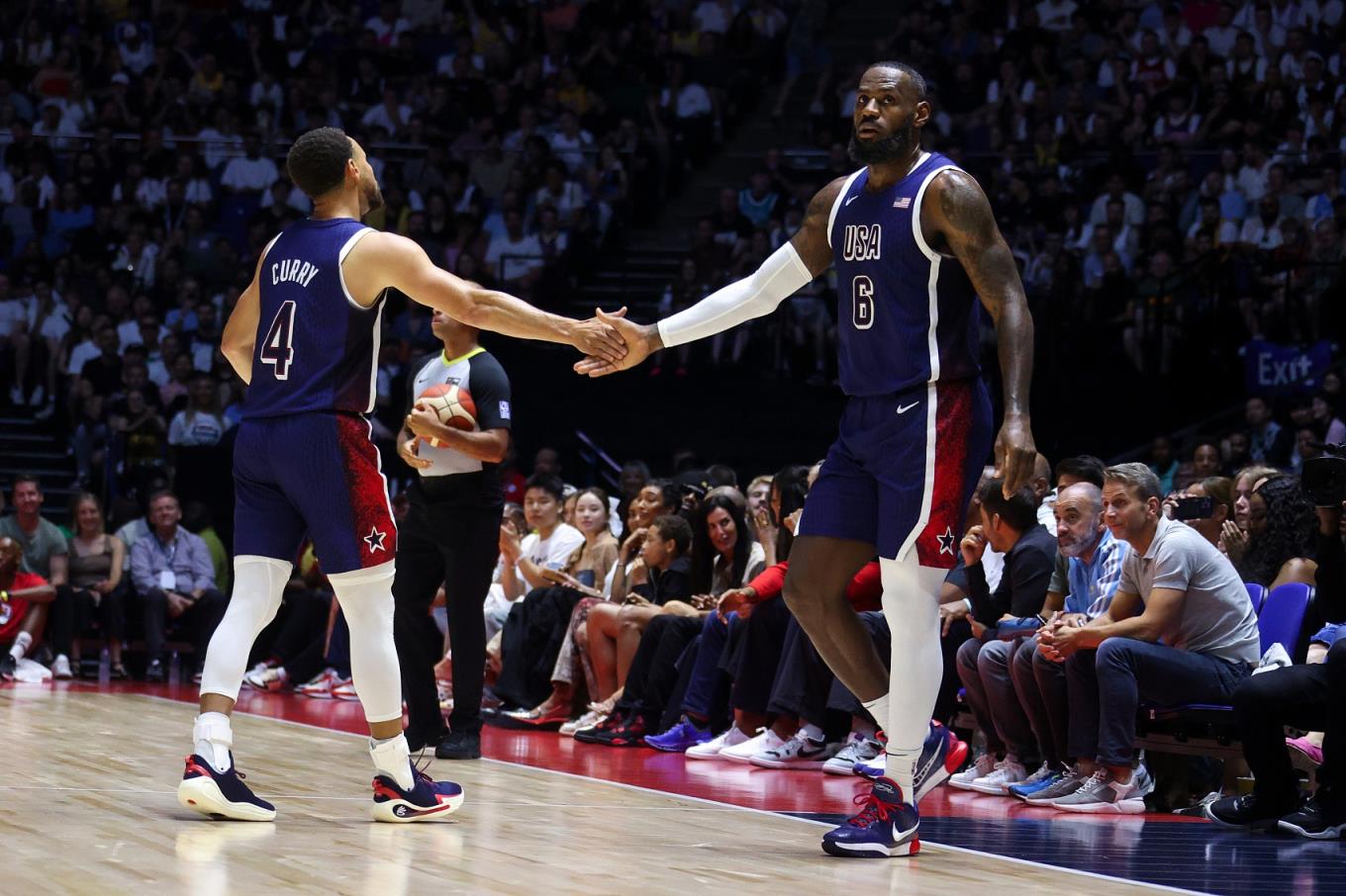 上半场比赛,美国男篮詹姆斯、杜兰特、库里三人打得比较随意,场上三人互相传球都打得比较无私,尤其詹姆斯连续助攻,杜兰特和库里接连外线三分,配合很默契。