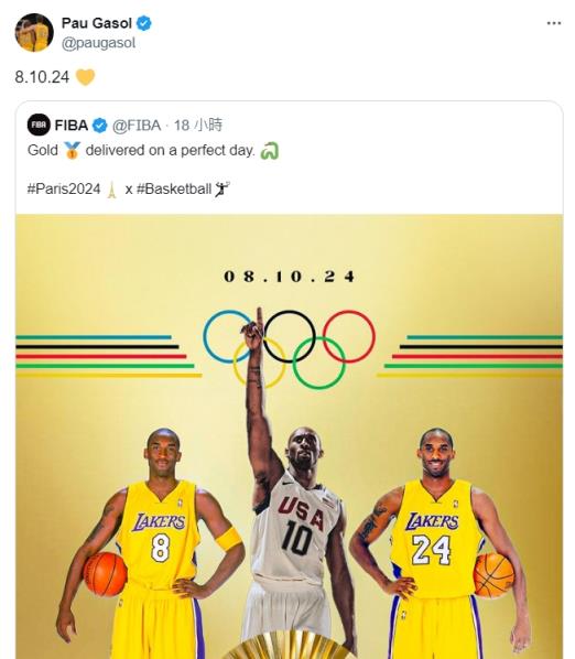 FIBA官方就发文纪念:“金牌在一个完美的日子里被获得。”