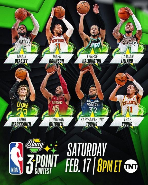 2月17日讯 近日,博彩网站公布本届印第安纳全明星三分大赛的夺冠赔率,其中卫冕冠军利拉德居首,比斯利和哈利伯顿并列第二。
