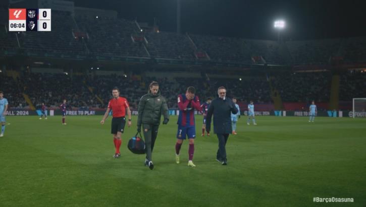 02月01日讯 巴萨vs奥萨苏纳第6分钟,费兰-托雷斯伤退,他下场时看起来非常难过,掩面痛哭。