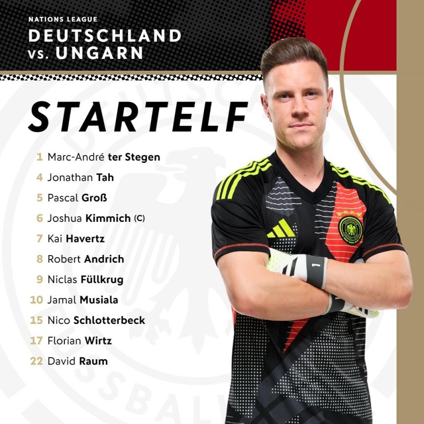 09月08日讯 欧国联A级联赛第1轮,德国对阵匈牙利,赛前首发公布。