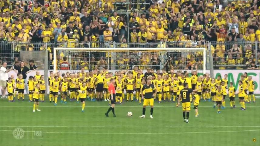 09月08日讯 皮什切克与库巴的告别战,多特组织了皮什切克、库巴和沙欣等人vs100个小朋友的趣味赛。